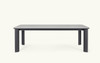 Rectangular table with metal frame and top in sintered stone.