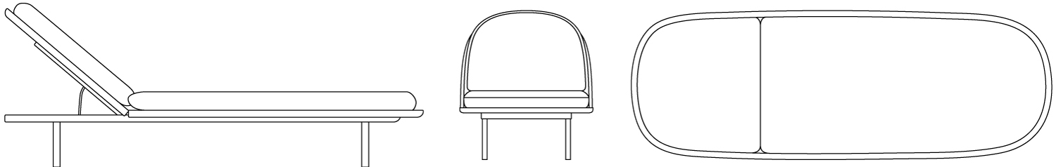 Rada aquamarine sunbed Soft-shaped lounger with metal structure and teak slats and padded waterproof cushion.
